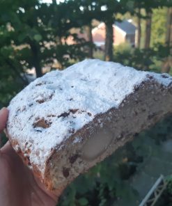 Gâteau traditionnel allemand, cette spécialité gourmande se conserve longtemps (plusieurs semaines) grâce au badigeonnage de beurre fondu à la sortie du four. Je vous le prépare avec des raisins trempés dans du rhum et des écorces d’oranges confites. C’est délicieux évidemment. A consommer en famille sans modération 😉