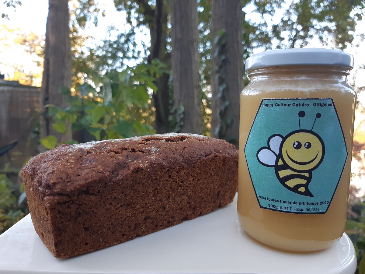 Du vrai Pain d’épices pur tradition; sans lait, sans beurre et sans oeufs! Juste de la farine (de seigle), du miel (de Guillaume Catoire-Happy Culteur d’Ottignies), de l’eau ET des épices bien sûr! Même quantité de miel que de farine.